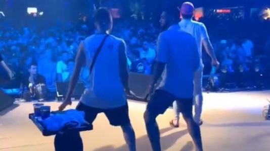 O primeiro a subir no palco foi o atacante do time francês. Neymar esbanjou molejo junto a Wesley Safadão e ainda fez 'dueto' junto ao cantor. O publico que estava curtindo o local foi ao delírio.